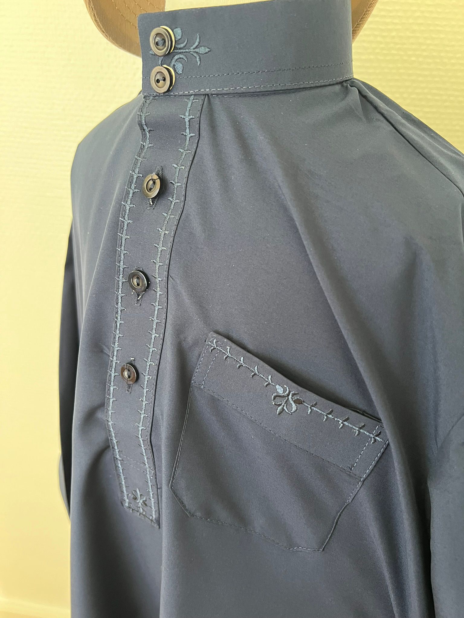 Optez pour un style raffiné avec ce qamis léger au col officier finement brodé. Muni de poche. Sa coupe ample assure un confort inégalé, parfait pour vos occasions spéciales comme pour vos journées décontractées.